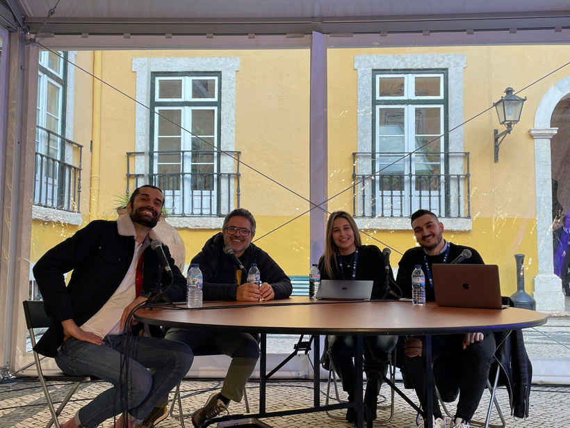 Live podcast about the importance of mental health in a post-pandemic "Descomplicada-Mente" with guests António Raminhos and Nilton at the UALCOM event. By Inês Sofia and Miguel Vilela